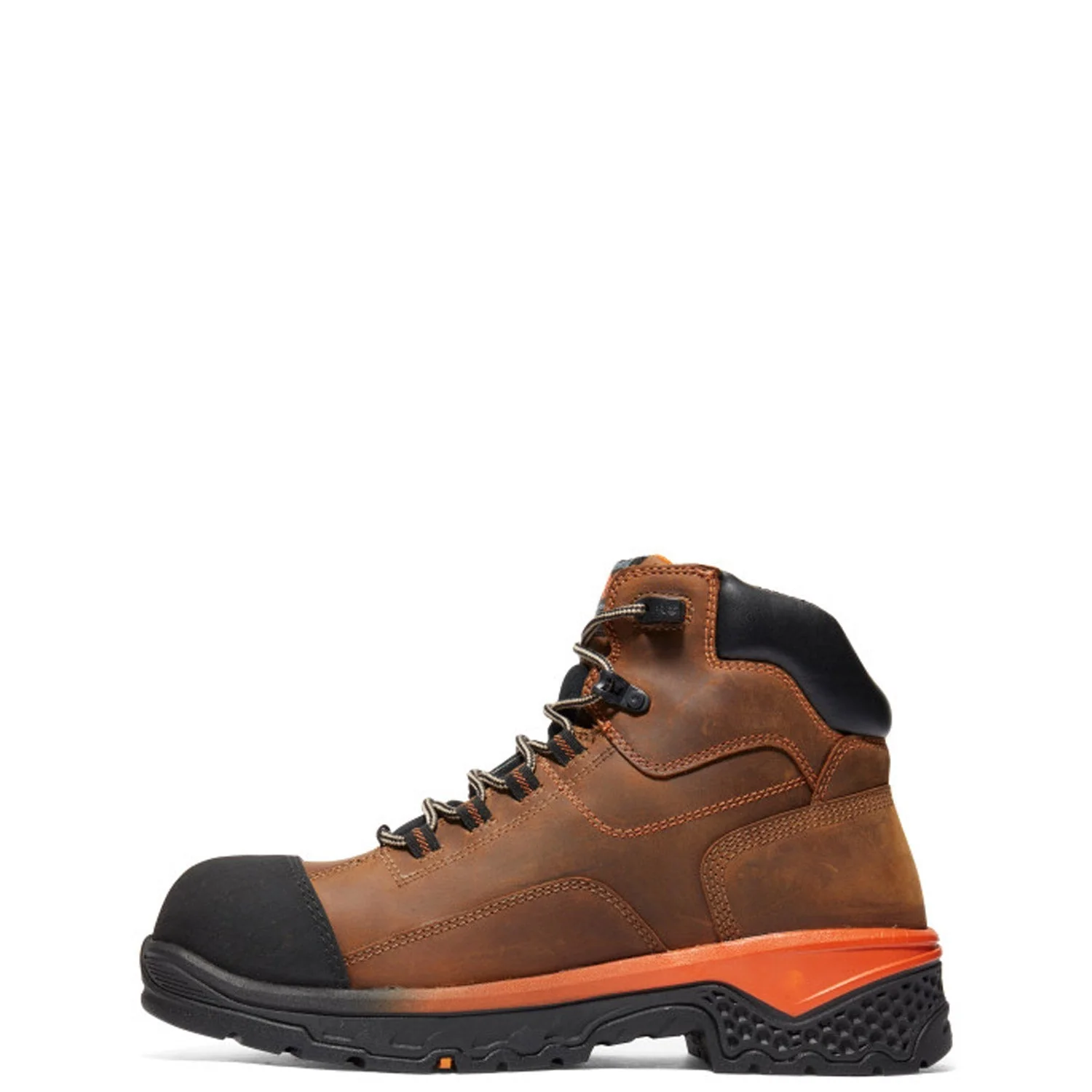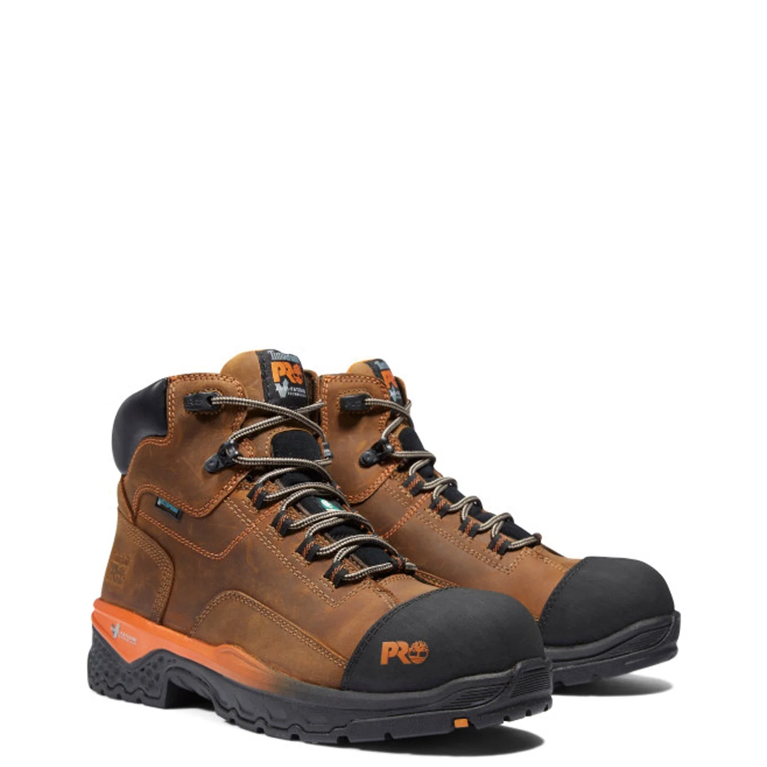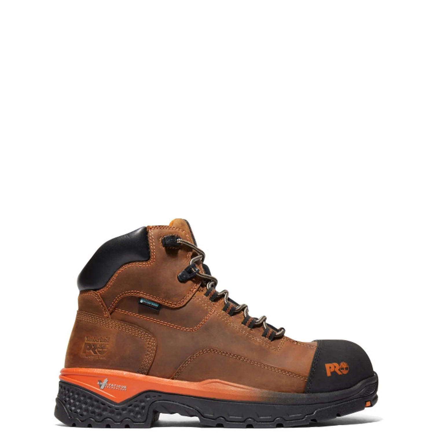 These 6-inch composite safety-toe boots are ready for anything your job site throws at them. Starting with a premium Timberland® full-grain, waterproof leather upper and an internal waterproof membrane for maximum waterproof protection and blood-borne pathogen resistance, we added our Anti-Fatigue Technology footbed for all-day shock absorption and energy return, electrical hazard protection, and our Timberland PRO® heat-, oil-, slip-, and abrasion-resistant, non-marking rubber outsole for reliable traction. Their breathable, moisture-wicking linings are made of ReBOTL fabric containing at least 50% recycled plastic with an antimicrobial treatment for odor control. These durable work boots are built for agility, comfort, and protection, so you can perform to your highest level without worrying about your feet.