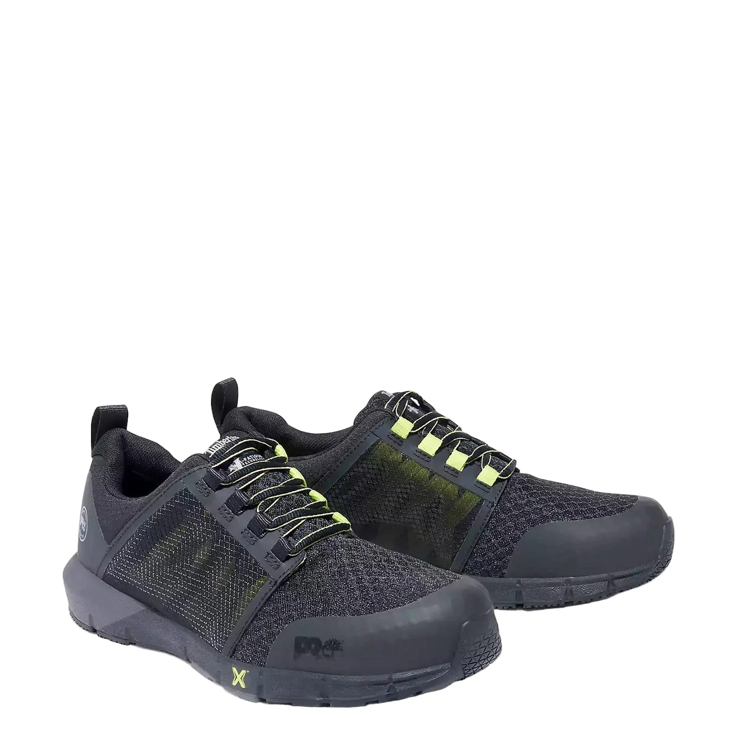 They may resemble your favorite athletic shoes, but our men's Radius work sneakers are built to take on the toughest job sites while helping to keep your feet comfortable and protected. Utilizing Timberland PROĀ® FLEX technology, durable stretch fabrics are incorporated with rubber outsoles that have anatomically positioned flex grooves so you get full range of motion without resistance. Their metal- and mutilation-free mesh uppers are breathable and have abrasion-resistant reinforcements for durability. We added composite safety toes, electrical hazard protection, our Anti-Fatigue Technology footbed for shock absorption and energy return, a lightweight HoverSpring foam midsole for industry-leading comfort, durability, and flexibility, breathable and moisture-wicking linings made of ReBOTL material containing at least 50% recycled plastic, and an antimicrobial treatment for odor control.